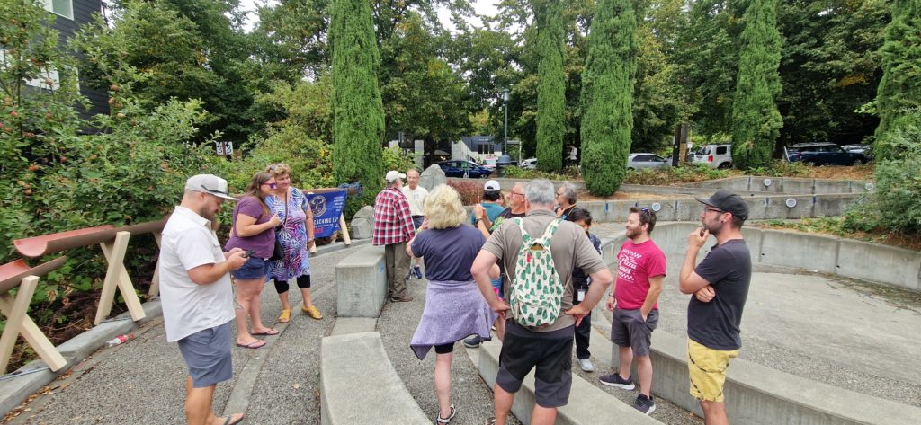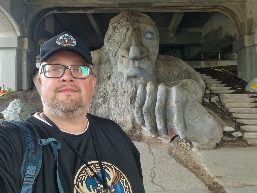 I’d planned a small meet-and-greet event at AB Ernst Park for noon, and my HQ tour ticket was booked for 14:00. In between, I aimed to complete the Geotour’s nine caches. The bus dropped me near the Fremont Troll, where I began. After two caches, I decided efficiency was key and grabbed a Lime pass to use an e-scooter – the fastest way to get everything done in time.